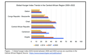 Figure – 1 Global hunger index (GHI) trends between 2000 and 2022 across six countries in the Central African Region( Source – https://www.researchgate.net/publication)